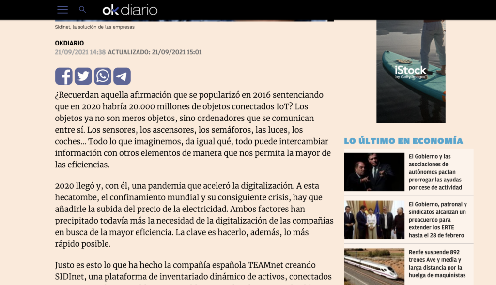 La redacción de economía y telecomunicaciones de OKDIARIO han puesto a SIDInet como ejemplo de plataforma necesaria para la digitalización y el aumento de la eficiencia de las compañías.